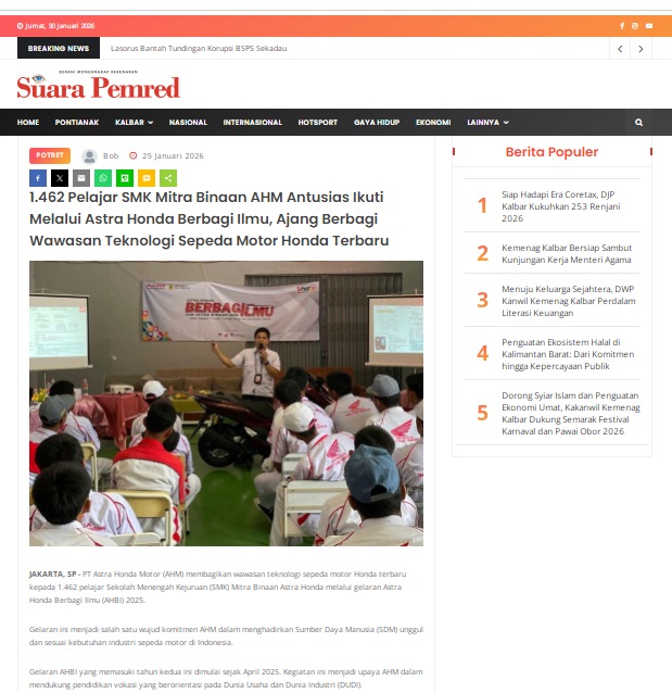 1.462 Pelajar SMK Mitra Binaan AHM Antusias Ikuti Melalui Astra Honda Berbagi Ilmu, Ajang Berbagi Wawasan Teknologi Sepeda Motor Honda Terbaru by masmul 25 Januari 2026 in Silahkan kunjungi https://www.suarapemredkalbar.com/read/potret/25012026/1462-pelajar-smk-mitra-binaan-ahm-antusias-ikuti-melalui-astra-honda-berbagi-ilmu-ajang-berbagi-wawasan-teknologi-sepeda-motor-honda-terbaru. You Might Like Regional Public Launching New ADV160 The SUV Pride Grand Launching New PCX 160 Truly Exceptional! Tetap hati-hati ya bro sist berkendara saat hujan.