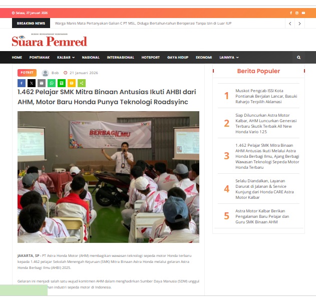 1.462 Pelajar SMK Mitra Binaan Antusias Ikuti AHBI dari AHM, Motor Baru Honda Punya Teknologi Roadsyinc by masmul 21 Januari 2026 in Silahkan kunjungi https://www.suarapemredkalbar.com/read/potret/21012026/1462-pelajar-smk-mitra-binaan-antusias-ikuti-ahbi-dari-ahm-motor-baru-honda-punya-teknologi-roadsyinc. You Might Like Regional Public Launching New ADV160 The SUV Pride Grand Launching New PCX 160 Truly Exceptional! Tetap hati-hati ya bro sist berkendara saat hujan.