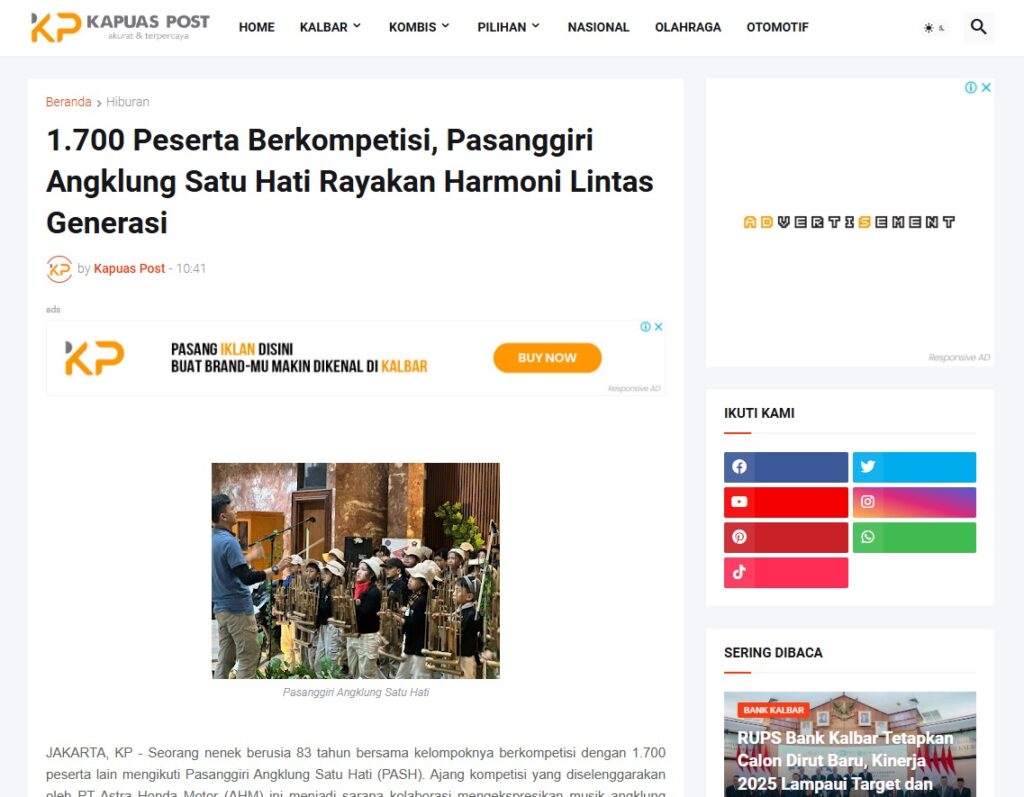 1.700 Peserta Berkompetisi, Pasanggiri Angklung Satu Hati Rayakan Harmoni Lintas Generasi by Muhammad Arif 11 Februari 2026 in Silahkan kunjungi https://www.kapuaspost.web.id/2026/02/1700-peserta-berkompetisi-pasanggiri.html. Tags: astra Astra Motor kalbar Astra Motor Pontianak astramotor honda kalbar pontianak sepeda motor You Might Like Regional Public Launching New ADV160 The SUV Pride Grand Launching New PCX 160 Truly Exceptional! Tetap hati-hati ya bro sist berkendara saat hujan.