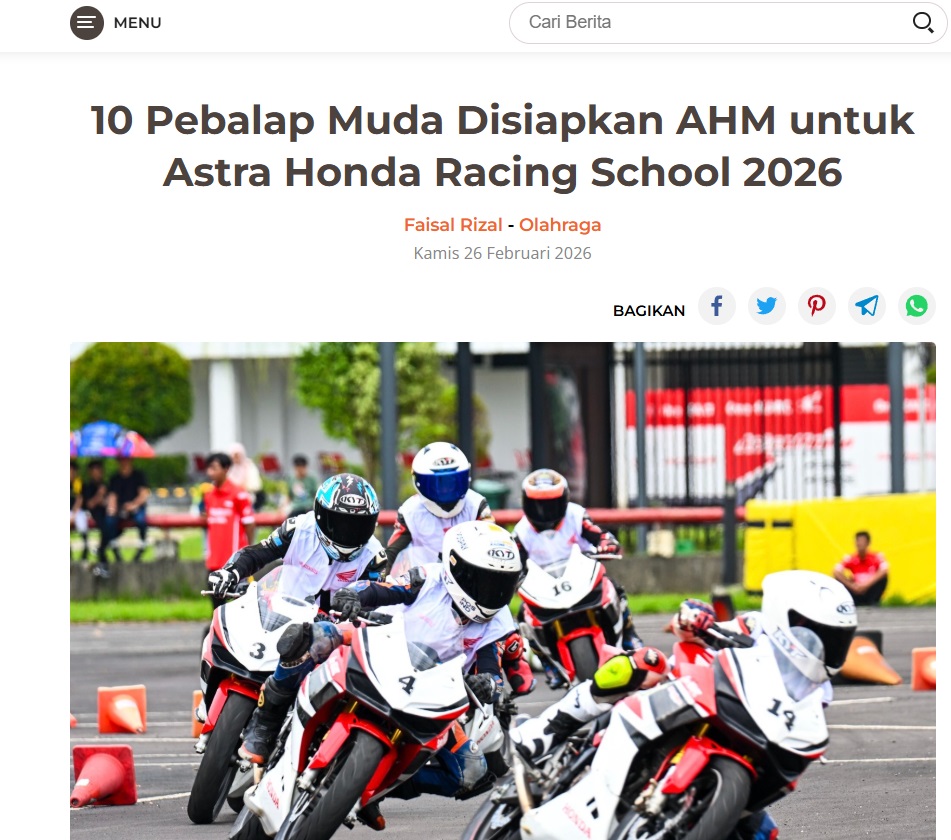 10 Pebalap Muda Disiapkan AHM untuk Astra Honda Racing School 2026 by Dodi Dodi 26 Februari 2026 in Silahkan kunjungi https://harianberkat.com/2026/02/26/10-pebalap-muda-disiapkan-ahm-untuk-astra-honda-racing-school-2026/. You Might Like Regional Public Launching New ADV160 The SUV Pride Grand Launching New PCX 160 Truly Exceptional! Tetap hati-hati ya bro sist berkendara saat hujan.