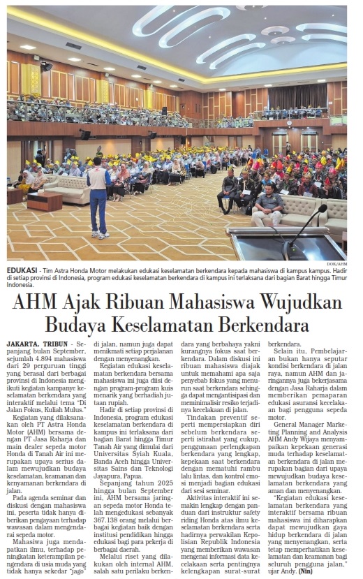 AHM Ajak Ribuan Mahasiswa WujudkanBudaya Keselamatan Berkendara by Ishak Ismail 8 Oktober 2025 in Silahkan buka . You Might Like Regional Public Launching New ADV160 The SUV Pride Grand Launching New PCX 160 Truly Exceptional! Tetap hati-hati ya bro sist berkendara saat hujan.