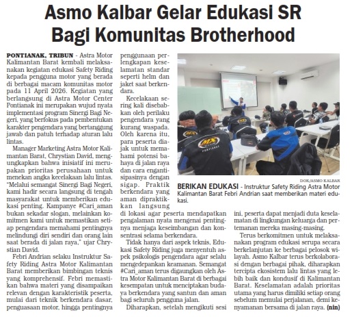 Asmo Kalbar Gelar Edukasi SR Bagi Komunitas Brotherhood by Nina Soraya 23 April 2026 in Silahkan buka . You Might Like Regional Public Launching New ADV160 The SUV Pride Grand Launching New PCX 160 Truly Exceptional! Tetap hati-hati ya bro sist berkendara saat hujan.