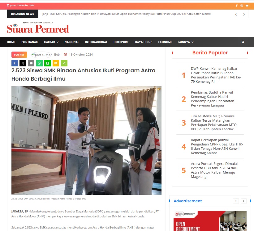 2.523 Siswa SMK Binaan Antusias Ikuti Program Astra Honda Berbagi Ilmu by masmul 19 Oktober 2024 in Silahkan kunjungi https://www.suarapemredkalbar.com/read/potret/19102024/2523-siswa-smk-binaan-antusias-ikuti-program-astra-honda-berbagi-ilmu. You Might Like Regional Public Launching New ADV160 The SUV Pride Grand Launching New PCX 160 Truly Exceptional! Tetap hati-hati ya bro sist berkendara saat hujan.