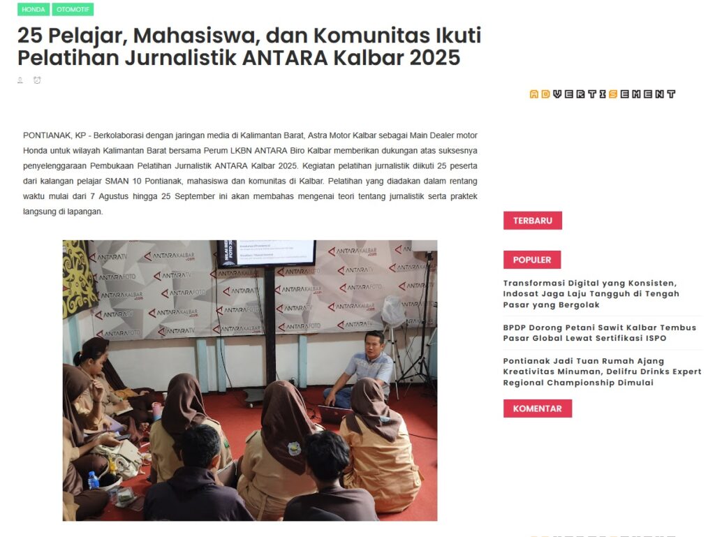 25 Pelajar, Mahasiswa, dan Komunitas Ikuti Pelatihan Jurnalistik ANTARA Kalbar 2025 by Muhammad Arif 24 Agustus 2025 in Silahkan kunjungi https://www.kapuaspost.web.id/2025/08/25-pelajar-mahasiswa-dan-komunitas.html. Tags: astra Astra Motor kalbar Astra Motor Pontianak astramotor honda kalbar pontianak sepeda motor You Might Like Regional Public Launching New ADV160 The SUV Pride Grand Launching New PCX 160 Truly Exceptional! Tetap hati-hati ya bro sist berkendara saat hujan.