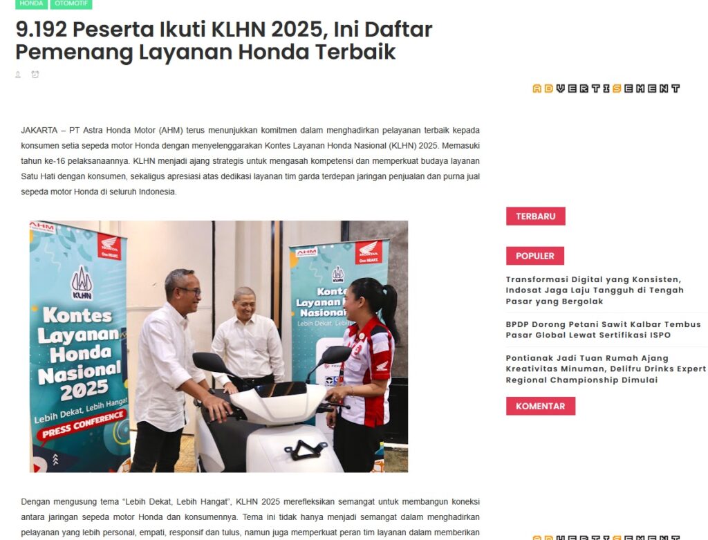 9.192 Peserta Ikuti KLHN 2025, Ini Daftar Pemenang Layanan Honda Terbaik by Muhammad Arif 24 Agustus 2025 in Silahkan kunjungi https://www.kapuaspost.web.id/2025/08/9192-peserta-ikuti-klhn-2025-ini-daftar_30.html. Tags: astra Astra Motor kalbar Astra Motor Pontianak astramotor honda kalbar pontianak sepeda motor You Might Like Regional Public Launching New ADV160 The SUV Pride Grand Launching New PCX 160 Truly Exceptional! Tetap hati-hati ya bro sist berkendara saat hujan.