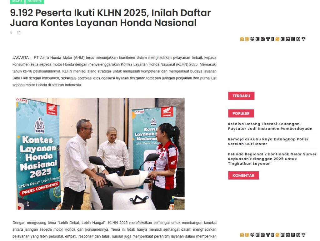 9.192 Peserta Ikuti KLHN 2025, Inilah Daftar Juara Kontes Layanan Honda Nasional by Muhammad Arif 8 September 2025 in Silahkan kunjungi https://www.kapuaspost.web.id/2025/09/9192-peserta-ikuti-klhn-2025-inilah.html. Tags: astra Astra Motor kalbar Astra Motor Pontianak astramotor honda kalbar pontianak sepeda motor You Might Like Regional Public Launching New ADV160 The SUV Pride Grand Launching New PCX 160 Truly Exceptional! Tetap hati-hati ya bro sist berkendara saat hujan.