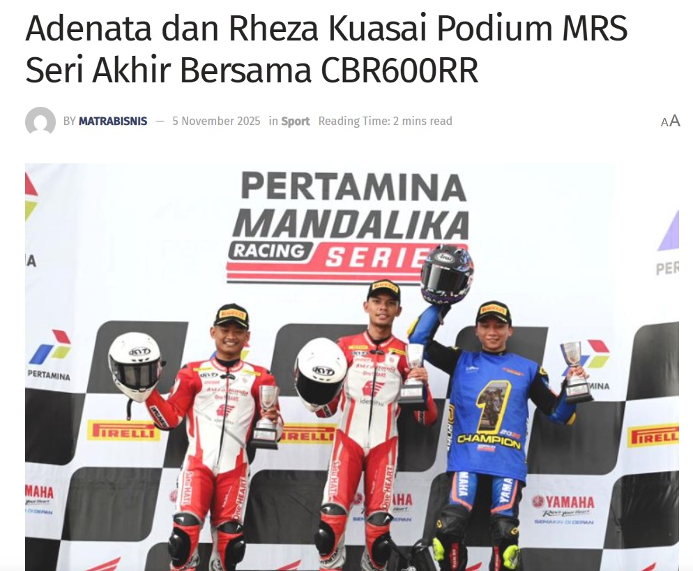 Adenata dan Rheza Kuasai Podium MRS Seri Akhir Bersama CBR600RR by Sri Yuliantiningsih 5 November 2025 in Silahkan kunjungi https://matrabisnis.id/2025/11/05/adenata-dan-rheza-kuasai-podium-mrs-seri-akhir-bersama-cbr600rr/#google_vignette. You Might Like Regional Public Launching New ADV160 The SUV Pride Grand Launching New PCX 160 Truly Exceptional! Tetap hati-hati ya bro sist berkendara saat hujan.