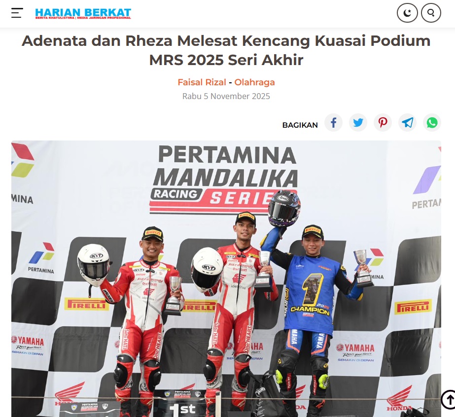 Adenata dan Rheza Melesat Kencang Kuasai Podium MRS 2025 Seri Akhir by Dodi Dodi 5 November 2025 in Silahkan kunjungi https://harianberkat.com/2025/11/05/adenata-dan-rheza-melesat-kencang-kuasai-podium-mrs-2025-seri-akhir/. You Might Like Regional Public Launching New ADV160 The SUV Pride Grand Launching New PCX 160 Truly Exceptional! Tetap hati-hati ya bro sist berkendara saat hujan.