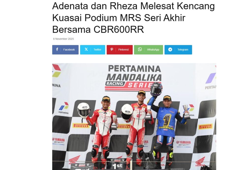 Adenata dan Rheza Melesat Kencang Kuasai Podium MRS Seri Akhir Bersama CBR600RR by Nova Sari 8 November 2025 in Silahkan kunjungi https://equator.co.id/adenata-dan-rheza-melesat-kencang-kuasai-podium-mrs-seri-akhir-bersama-cbr600rr/. You Might Like Regional Public Launching New ADV160 The SUV Pride Grand Launching New PCX 160 Truly Exceptional! Tetap hati-hati ya bro sist berkendara saat hujan.