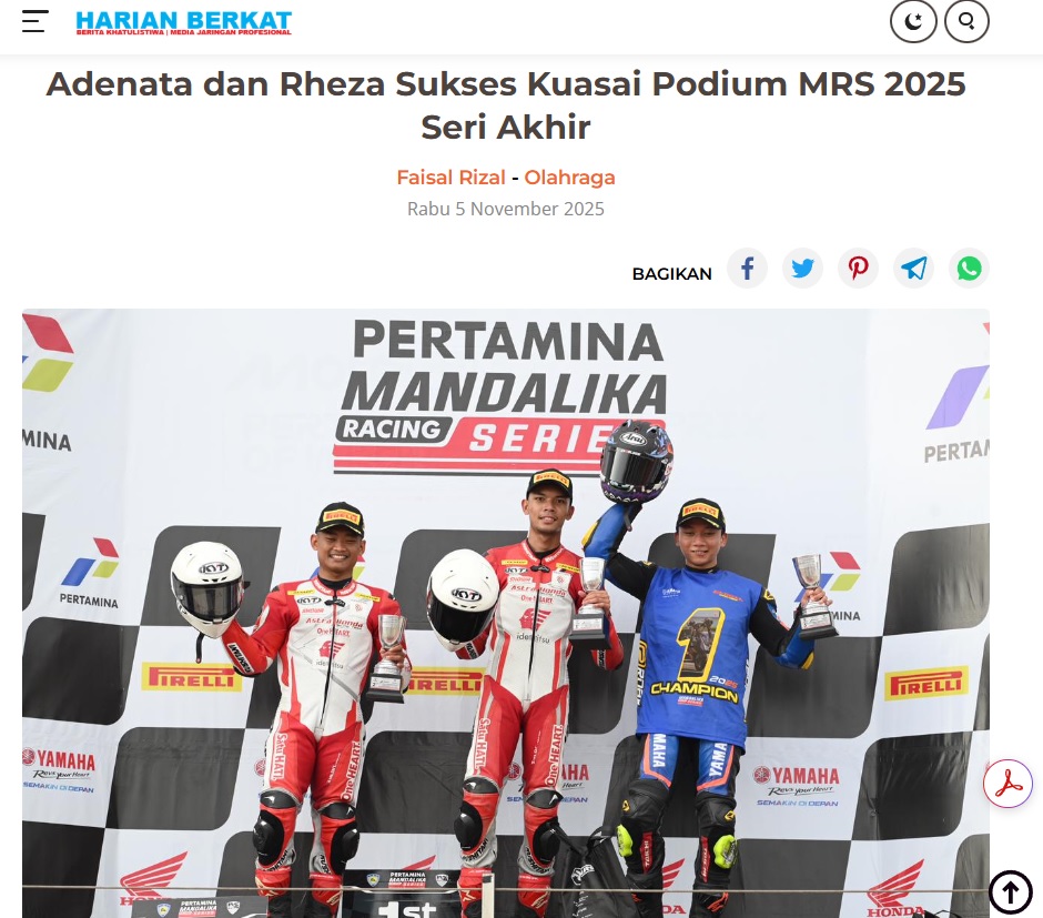 Adenata dan Rheza Sukses Kuasai Podium MRS 2025 Seri Akhir by Dodi Dodi 5 November 2025 in Silahkan kunjungi https://harianberkat.com/2025/11/05/adenata-dan-rheza-sukses-kuasai-podium-mrs-2025-seri-akhir/. You Might Like Regional Public Launching New ADV160 The SUV Pride Grand Launching New PCX 160 Truly Exceptional! Tetap hati-hati ya bro sist berkendara saat hujan.