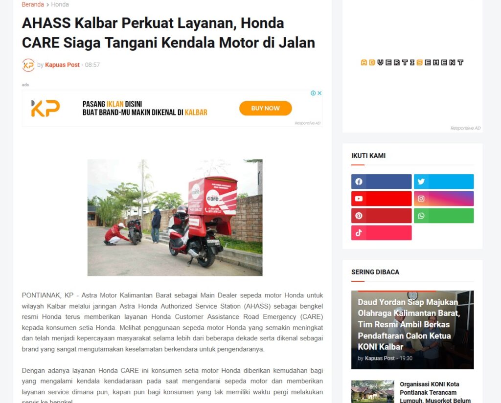 AHASS Kalbar Perkuat Layanan, Honda CARE Siaga Tangani Kendala Motor di Jalan by Muhammad Arif 29 November 2025 in Silahkan kunjungi https://www.kapuaspost.web.id/2025/11/ahass-kalbar-perkuat-layanan-honda-care.html. Tags: astra Astra Motor kalbar Astra Motor Pontianak astramotor honda kalbar pontianak sepeda motor You Might Like Regional Public Launching New ADV160 The SUV Pride Grand Launching New PCX 160 Truly Exceptional! Tetap hati-hati ya bro sist berkendara saat hujan.