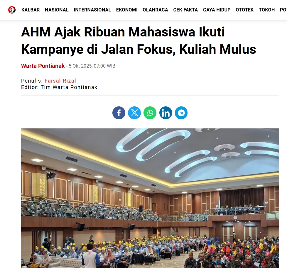 AHM Ajak Ribuan Mahasiswa Ikuti Kampanye di Jalan Fokus, Kuliah Mulus by Faisal Rizal 5 Oktober 2025 in Silahkan kunjungi https://wartapontianak.pikiran-rakyat.com/gaya-hidup/pr-1179695626/ahm-ajak-ribuan-mahasiswa-ikuti-kampanye-di-jalan-fokus-kuliah-mulus. You Might Like Regional Public Launching New ADV160 The SUV Pride Grand Launching New PCX 160 Truly Exceptional! Tetap hati-hati ya bro sist berkendara saat hujan.