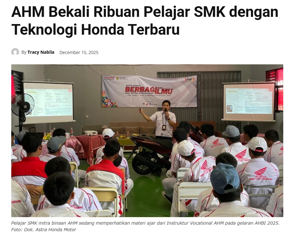 AHM Bekali Ribuan Pelajar SMK dengan Teknologi Honda Terbaru by Leo Prima 15 Desember 2025 in Silahkan kunjungi https://pontianaktoday.id/ahm-bekali-ribuan-pelajar-smk-dengan-teknologi-honda-terbaru/. You Might Like Regional Public Launching New ADV160 The SUV Pride Grand Launching New PCX 160 Truly Exceptional! Tetap hati-hati ya bro sist berkendara saat hujan.