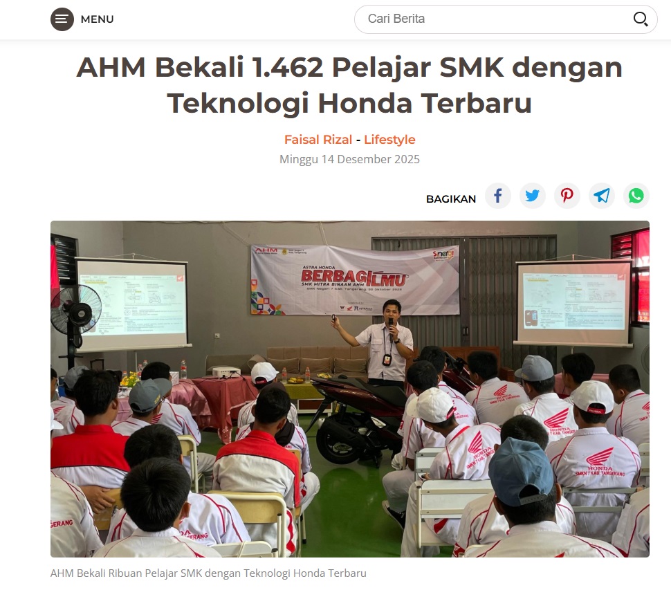 AHM Bekali Ribuan Pelajar SMK dengan Teknologi Honda Terbaru by Dodi Dodi 14 Desember 2025 in Silahkan kunjungi https://harianberkat.com/2025/12/14/ahm-bekali-ribuan-pelajar-smk-dengan-teknologi-honda-terbaru/#google_vignette. You Might Like Regional Public Launching New ADV160 The SUV Pride Grand Launching New PCX 160 Truly Exceptional! Tetap hati-hati ya bro sist berkendara saat hujan.