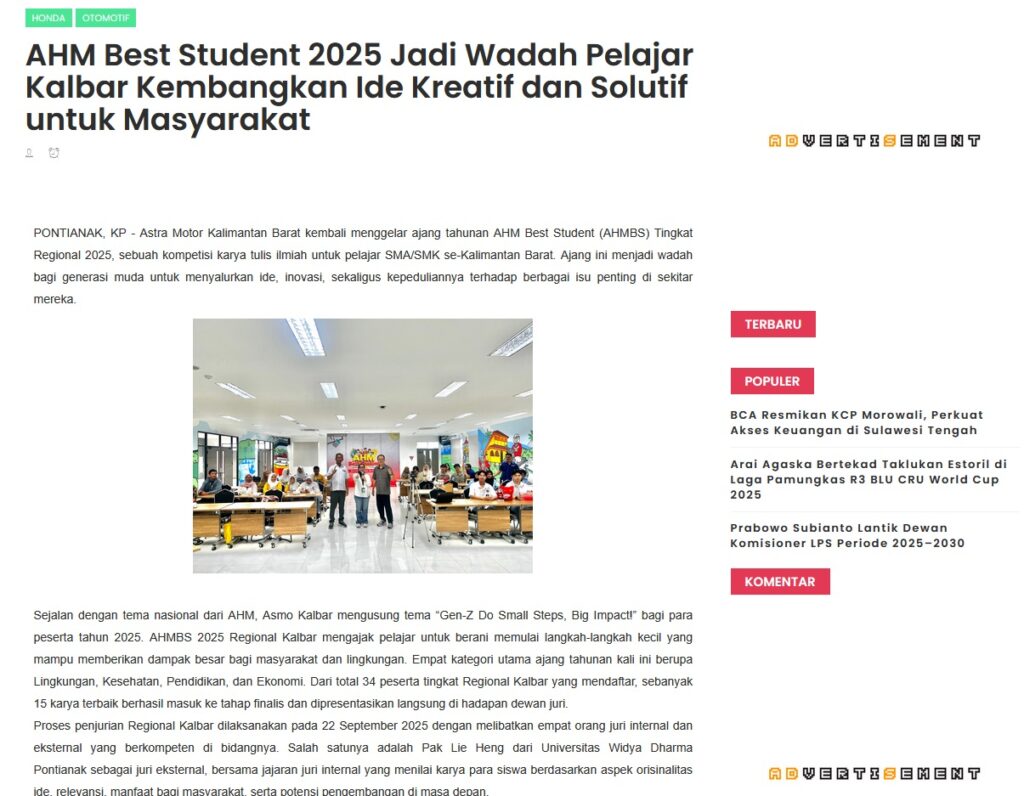 AHM Best Student 2025 Jadi Wadah Pelajar Kalbar Kembangkan Ide Kreatif dan Solutif untuk Masyarakat