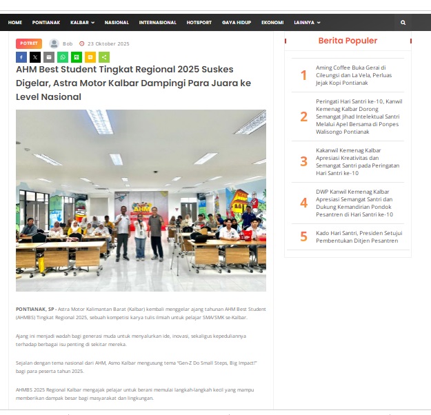 AHM Best Student Tingkat Regional 2025 Suskes Digelar, Astra Motor Kalbar Dampingi Para Juara ke Level Nasional by masmul 23 Oktober 2025 in Silahkan kunjungi https://www.suarapemredkalbar.com/read/potret/23102025/ahm-best-student-tingkat-regional-2025-suskes-digelar-astra-motor-kalbar-dampingi-para-juara-ke-level-nasional. You Might Like Regional Public Launching New ADV160 The SUV Pride Grand Launching New PCX 160 Truly Exceptional! Tetap hati-hati ya bro sist berkendara saat hujan.