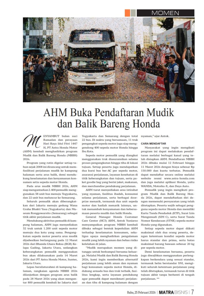 AHM Buka Pendaftaran Mudik dan Balik Bareng Honda by Sri Yuliantiningsih 25 Februari 2026 in Silahkan buka . You Might Like Regional Public Launching New ADV160 The SUV Pride Grand Launching New PCX 160 Truly Exceptional! Tetap hati-hati ya bro sist berkendara saat hujan.