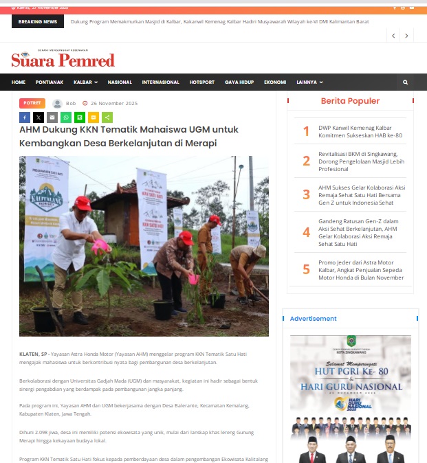 AHM Dukung KKN Tematik Mahaiswa UGM untuk Kembangkan Desa Berkelanjutan di Merapi by masmul 26 November 2025 in Silahkan kunjungi https://www.suarapemredkalbar.com/read/potret/26112025/ahm-dukung-kkn-tematik-mahaiswa-ugm-untuk-kembangkan-desa-berkelanjutan-di-merapi. You Might Like Regional Public Launching New ADV160 The SUV Pride Grand Launching New PCX 160 Truly Exceptional! Tetap hati-hati ya bro sist berkendara saat hujan.