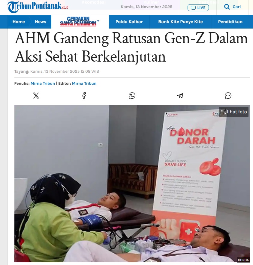 AHM Gandeng Ratusan Gen-Z Dalam Aksi Sehat Berkelanjutan by Ishak Ismail 13 November 2025 in Silahkan kunjungi https://pontianak.tribunnews.com/otomotif/1149915/ahm-gandeng-ratusan-gen-z-dalam-aksi-sehat-berkelanjutan. You Might Like Regional Public Launching New ADV160 The SUV Pride Grand Launching New PCX 160 Truly Exceptional! Tetap hati-hati ya bro sist berkendara saat hujan.