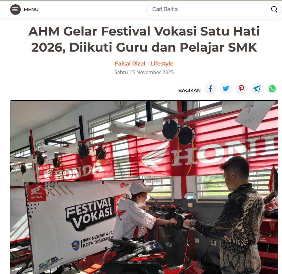 AHM Gelar Festival Vokasi Satu Hati 2026, Diikuti Guru dan Pelajar SMK by Dodi Dodi 15 November 2025 in Silahkan kunjungi https://harianberkat.com/2025/11/15/ahm-gelar-festival-vokasi-satu-hati-2026-diikuti-guru-dan-pelajar-smk/. You Might Like Regional Public Launching New ADV160 The SUV Pride Grand Launching New PCX 160 Truly Exceptional! Tetap hati-hati ya bro sist berkendara saat hujan.
