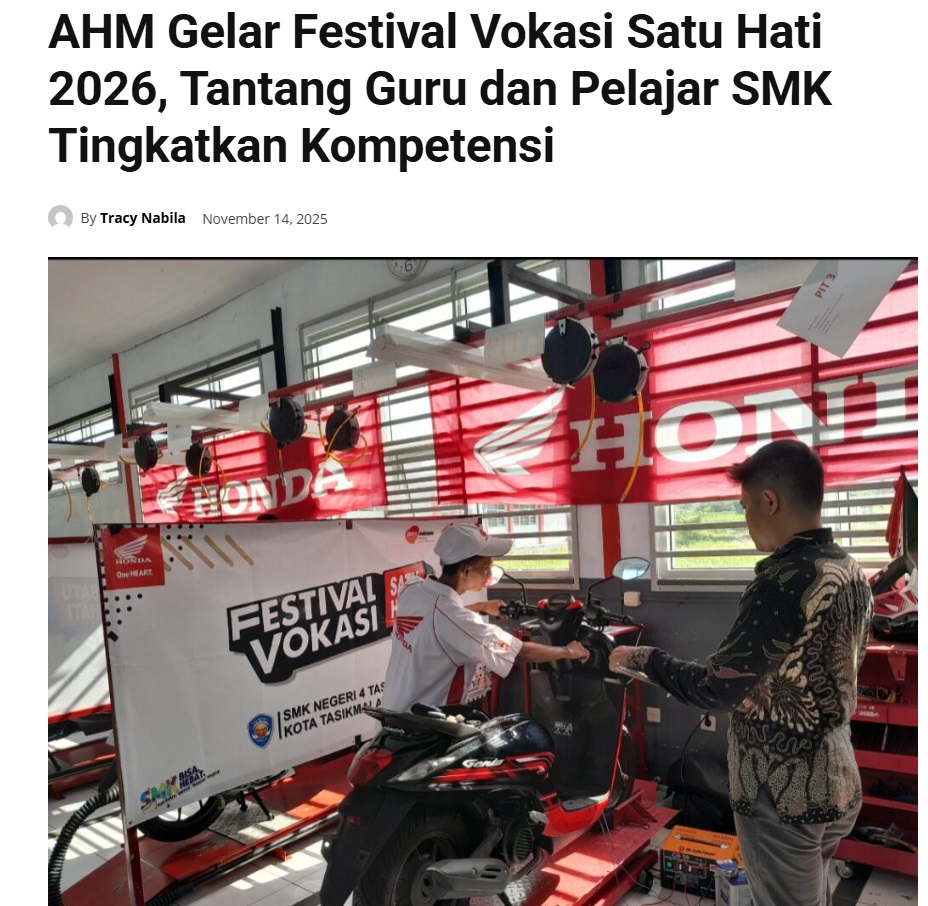 AHM Gelar Festival Vokasi Satu Hati 2026, Tantang Guru dan Pelajar SMK Tingkatkan Kompetensi by Leo Prima 14 November 2025 in Silahkan kunjungi https://pontianaktoday.id/ahm-gelar-festival-vokasi-satu-hati-2026-tantang-guru-dan-pelajar-smk-tingkatkan-kompetensi/. You Might Like Regional Public Launching New ADV160 The SUV Pride Grand Launching New PCX 160 Truly Exceptional! Tetap hati-hati ya bro sist berkendara saat hujan.