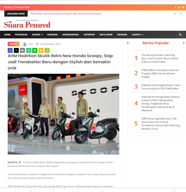 AHM Hadirkan Skutik Retro New Honda Scoopy, Siap Jadi Trendsetter Baru dengan Stylish dan Semakin Unik by masmul 19 November 2025 in Silahkan kunjungi https://www.suarapemredkalbar.com/read/potret/19112025/ahm-hadirkan-skutik-retro-new-honda-scoopy-siap-jadi-trendsetter-baru-dengan-stylish-dan-semakin-unik. You Might Like Regional Public Launching New ADV160 The SUV Pride Grand Launching New PCX 160 Truly Exceptional! Tetap hati-hati ya bro sist berkendara saat hujan.