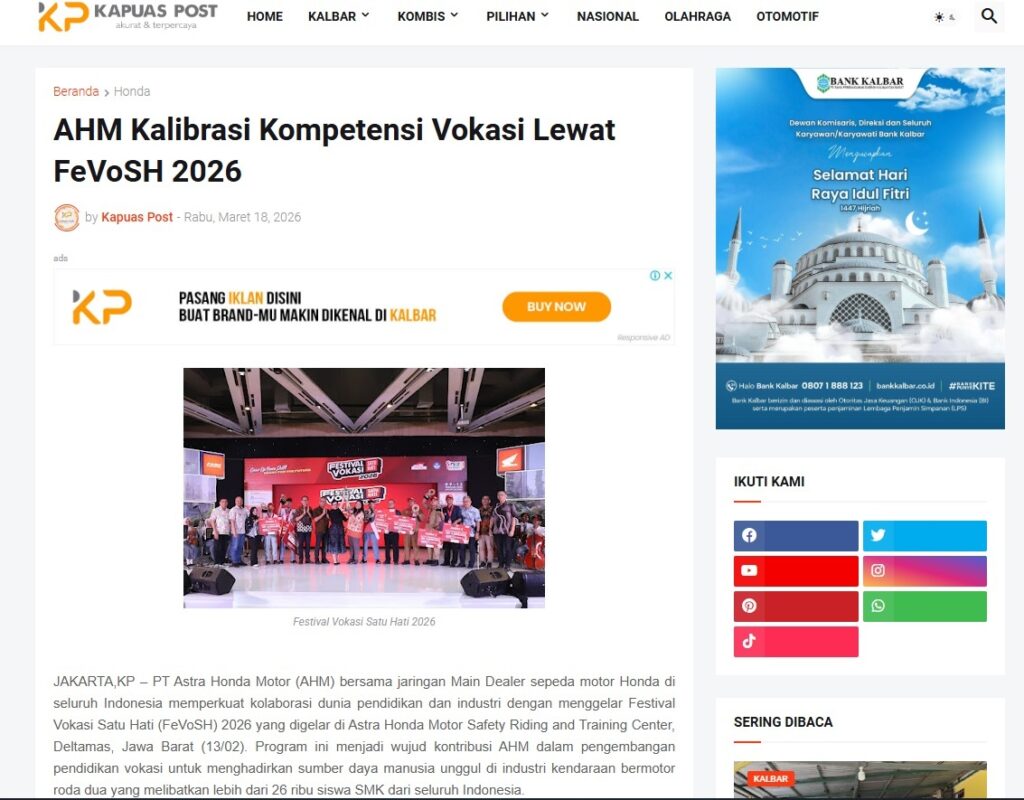 AHM Kalibrasi Kompetensi Vokasi Lewat FeVoSH 2026 by Muhammad Arif 18 Maret 2026 in Silahkan kunjungi https://www.kapuaspost.web.id/2026/03/ahm-kalibrasi-kompetensi-vokasi-lewat.html. Tags: astra Astra Motor kalbar Astra Motor Pontianak astramotor honda kalbar pontianak sepeda motor You Might Like Regional Public Launching New ADV160 The SUV Pride Grand Launching New PCX 160 Truly Exceptional! Tetap hati-hati ya bro sist berkendara saat hujan.