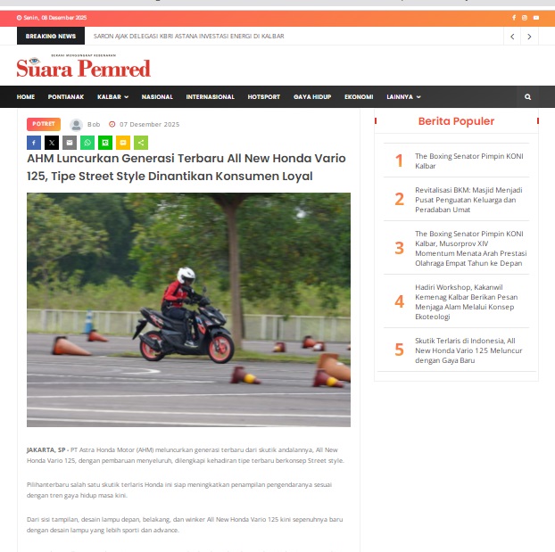 AHM Luncurkan Generasi Terbaru All New Honda Vario 125, Tipe Street Style Dinantikan Konsumen Loyal by masmul 7 Desember 2025 in Silahkan kunjungi https://www.suarapemredkalbar.com/read/potret/07122025/ahm-luncurkan-generasi-terbaru-all-new-honda-vario-125-tipe-street-style-dinantikan-konsumen-loyal. You Might Like Regional Public Launching New ADV160 The SUV Pride Grand Launching New PCX 160 Truly Exceptional! Tetap hati-hati ya bro sist berkendara saat hujan.