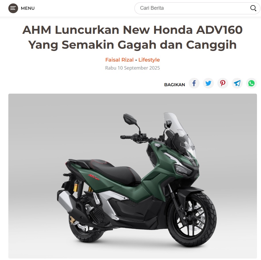 AHM Luncurkan New Honda ADV160 Yang Semakin Gagah dan Canggih by Dodi Dodi 10 September 2025 in Silahkan kunjungi https://harianberkat.com/2025/09/10/ahm-luncurkan-new-honda-adv160-yang-semakin-gagah-dan-canggih/. You Might Like Regional Public Launching New ADV160 The SUV Pride Grand Launching New PCX 160 Truly Exceptional! Tetap hati-hati ya bro sist berkendara saat hujan.