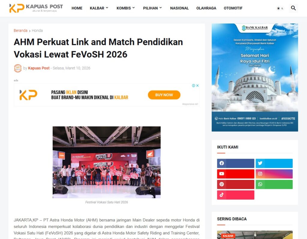 AHM Perkuat Link and Match Pendidikan Vokasi Lewat FeVoSH 2026 by Muhammad Arif 10 Maret 2026 in Silahkan kunjungi https://www.kapuaspost.web.id/2026/03/ahm-perkuat-link-and-match-pendidikan.html. Tags: astra Astra Motor kalbar Astra Motor Pontianak astramotor honda kalbar pontianak sepeda motor You Might Like Regional Public Launching New ADV160 The SUV Pride Grand Launching New PCX 160 Truly Exceptional! Tetap hati-hati ya bro sist berkendara saat hujan.