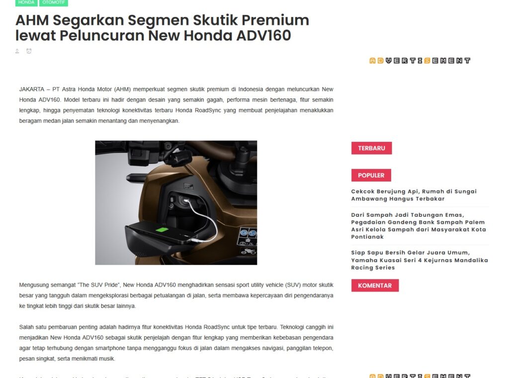 AHM Segarkan Segmen Skutik Premium lewat Peluncuran New Honda ADV160 by Muhammad Arif 27 September 2025 in Silahkan kunjungi https://www.kapuaspost.web.id/2025/09/ahm-segarkan-segmen-skutik-premium.html. Tags: astra Astra Motor kalbar Astra Motor Pontianak astramotor honda kalbar pontianak sepeda motor You Might Like Regional Public Launching New ADV160 The SUV Pride Grand Launching New PCX 160 Truly Exceptional! Tetap hati-hati ya bro sist berkendara saat hujan.