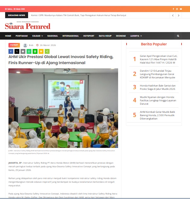 AHM Ukir Prestasi Global Lewat Inovasi Safety Riding, Finis Runner-Up di Ajang Internasional by masmul 26 Maret 2026 in Silahkan kunjungi https://www.suarapemredkalbar.com/read/potret/26032026/ahm-ukir-prestasi-global-lewat-inovasi-safety-riding-finis-runner-up-di-ajang-internasional. You Might Like Regional Public Launching New ADV160 The SUV Pride Grand Launching New PCX 160 Truly Exceptional! Tetap hati-hati ya bro sist berkendara saat hujan.