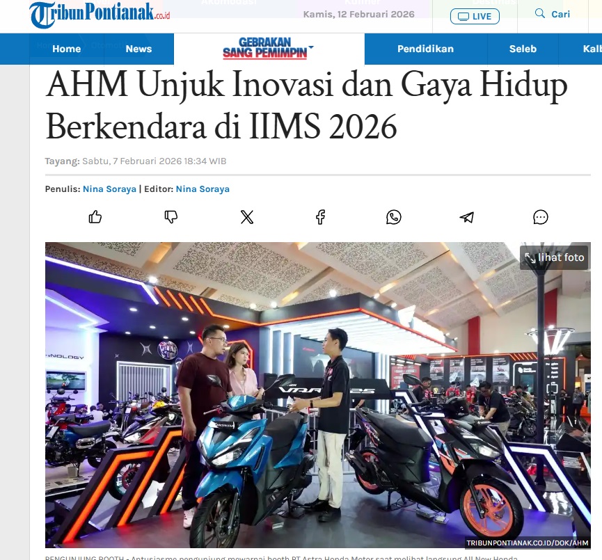 AHM Unjuk Inovasi dan Gaya Hidup Berkendara di IIMS 2026 by Nina Soraya 7 Februari 2026 in Silahkan kunjungi https://pontianak.tribunnews.com/otomotif/1161255/ahm-unjuk-inovasi-dan-gaya-hidup-berkendara-di-iims-2026. You Might Like Regional Public Launching New ADV160 The SUV Pride Grand Launching New PCX 160 Truly Exceptional! Tetap hati-hati ya bro sist berkendara saat hujan.