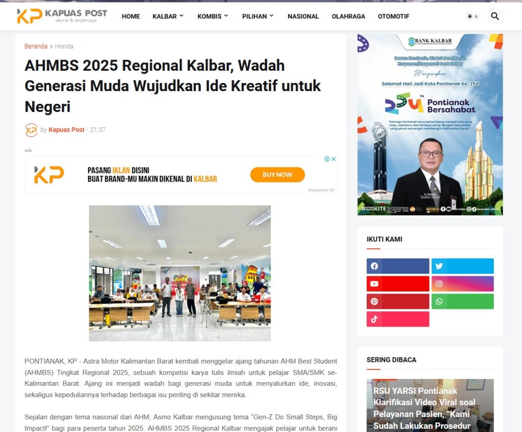 AHMBS 2025 Regional Kalbar, Wadah Generasi Muda Wujudkan Ide Kreatif untuk Negeri