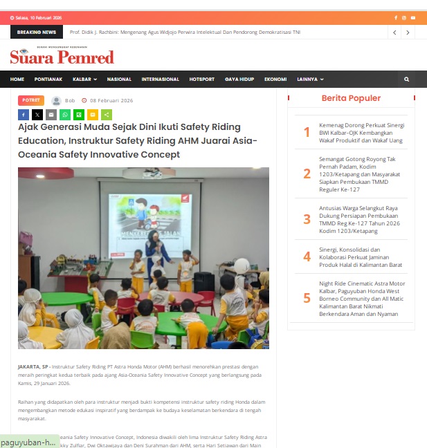 Ajak Generasi Muda Sejak Dini Ikuti Safety Riding Education, Instruktur Safety Riding AHM Juarai Asia-Oceania Safety Innovative Concept by masmul 8 Februari 2026 in Silahkan kunjungi https://www.suarapemredkalbar.com/read/potret/08022026/ajak-generasi-muda-sejak-dini-ikuti-safety-riding-education-instruktur-safety-riding-ahm-juarai-asia-oceania-safety-innovative-concept. You Might Like Regional Public Launching New ADV160 The SUV Pride Grand Launching New PCX 160 Truly Exceptional! Tetap hati-hati ya bro sist berkendara saat hujan.