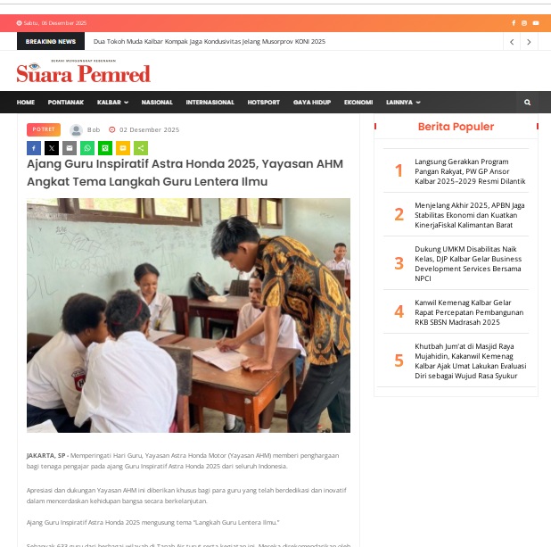 Ajang Guru Inspiratif Astra Honda 2025, Yayasan AHM Angkat Tema Langkah Guru Lentera Ilmu by masmul 2 Desember 2025 in Silahkan kunjungi https://www.suarapemredkalbar.com/read/potret/02122025/ajang-guru-inspiratif-astra-honda-2025-yayasan-ahm-angkat-tema-langkah-guru-lentera-ilmu. You Might Like Regional Public Launching New ADV160 The SUV Pride Grand Launching New PCX 160 Truly Exceptional! Tetap hati-hati ya bro sist berkendara saat hujan.