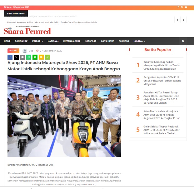 Ajang Indonesia Motorcycle Show 2025, PT AHM Bawa Motor Listrik sebagai Kebanggaan Karya Anak Bangsa by masmul 27 September 2025 in Silahkan kunjungi https://www.suarapemredkalbar.com/read/potret/27092025/ajang-indonesia-motorcycle-show-2025-pt-ahm-bawa-motor-listrik-sebagai-kebanggaan-karya-anak-bangsa. You Might Like Regional Public Launching New ADV160 The SUV Pride Grand Launching New PCX 160 Truly Exceptional! Tetap hati-hati ya bro sist berkendara saat hujan.