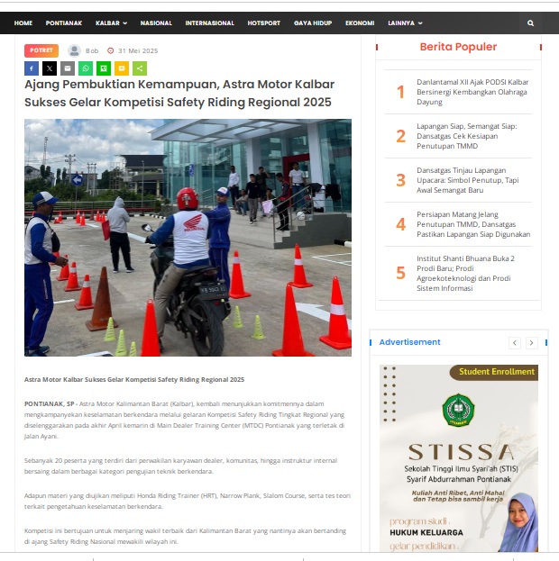 Ajang Pembuktian Kemampuan, Astra Motor Kalbar Sukses Gelar Kompetisi Safety Riding Regional 2025 by masmul 31 Mei 2025 in Silahkan kunjungi https://www.suarapemredkalbar.com/read/potret/31052025/ajang-pembuktian-kemampuan-astra-motor-kalbar-sukses-gelar-kompetisi-safety-riding-regional-2025. You Might Like Regional Public Launching New ADV160 The SUV Pride Grand Launching New PCX 160 Truly Exceptional! Tetap hati-hati ya bro sist berkendara saat hujan.