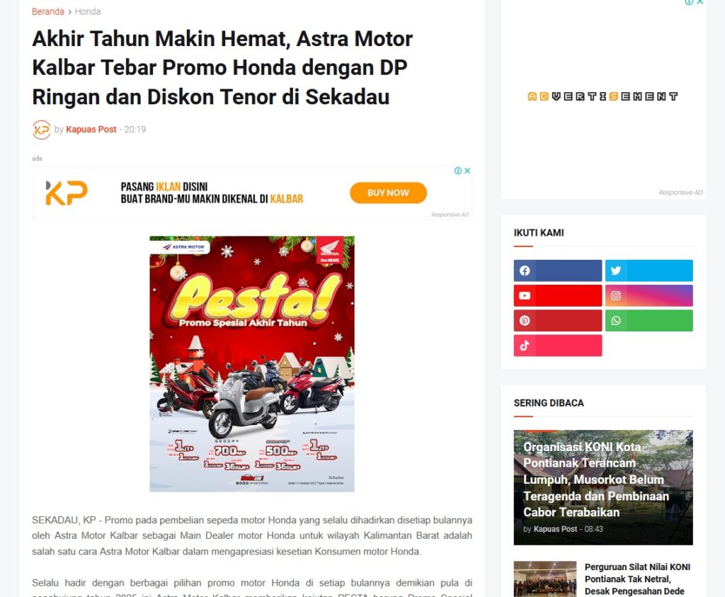 Akhir Tahun Makin Hemat, Astra Motor Kalbar Tebar Promo Honda dengan DP Ringan dan Diskon Tenor di Sekadau by Muhammad Arif 10 Desember 2025 in Silahkan kunjungi https://www.kapuaspost.web.id/2025/12/akhir-tahun-makin-hemat-astra-motor.html. Tags: astra Astra Motor kalbar Astra Motor Pontianak astramotor honda kalbar pontianak sepeda motor You Might Like Regional Public Launching New ADV160 The SUV Pride Grand Launching New PCX 160 Truly Exceptional! Tetap hati-hati ya bro sist berkendara saat hujan.