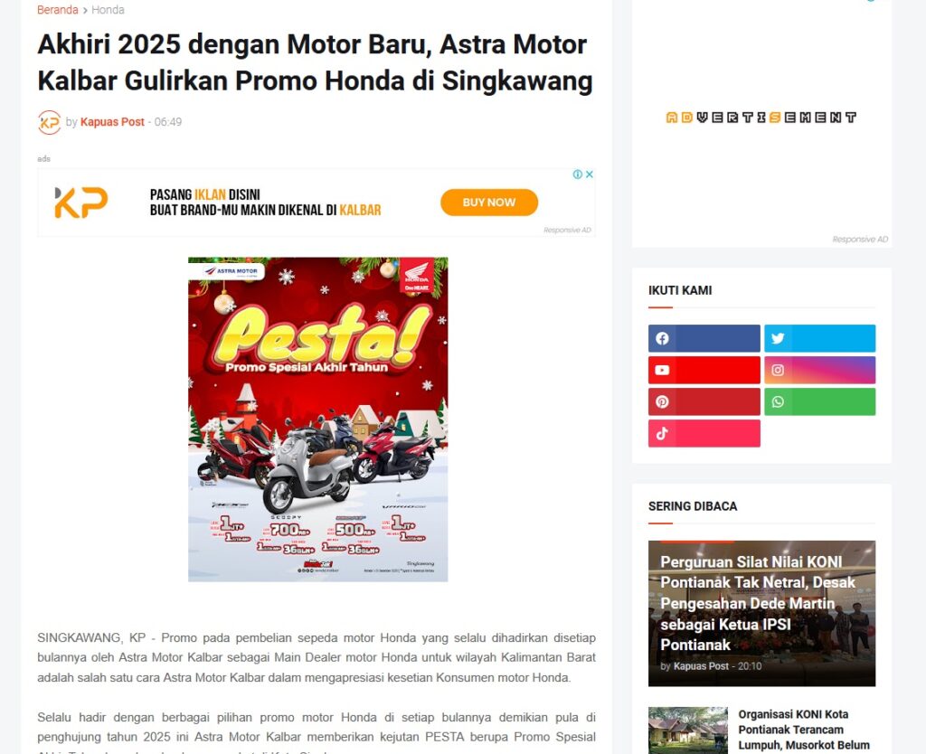 Akhiri 2025 dengan Motor Baru, Astra Motor Kalbar Gulirkan Promo Honda di Singkawang by Muhammad Arif 20 Desember 2025 in Silahkan kunjungi https://www.kapuaspost.web.id/2025/12/akhiri-2025-dengan-motor-baru-astra.html. Tags: astra Astra Motor kalbar Astra Motor Pontianak astramotor honda kalbar pontianak sepeda motor You Might Like Regional Public Launching New ADV160 The SUV Pride Grand Launching New PCX 160 Truly Exceptional! Tetap hati-hati ya bro sist berkendara saat hujan.