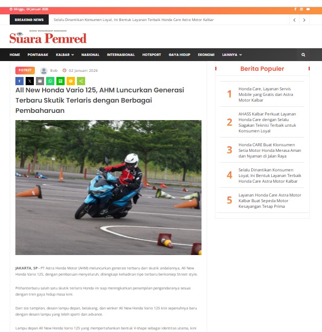 All New Honda Vario 125, AHM Luncurkan Generasi Terbaru Skutik Terlaris dengan Berbagai Pembaharuan by masmul 2 Januari 2026 in Silahkan kunjungi https://www.suarapemredkalbar.com/read/potret/02012026/all-new-honda-vario-125-ahm-luncurkan-generasi-terbaru-skutik-terlaris-dengan-berbagai-pembaharuan. You Might Like Regional Public Launching New ADV160 The SUV Pride Grand Launching New PCX 160 Truly Exceptional! Tetap hati-hati ya bro sist berkendara saat hujan.