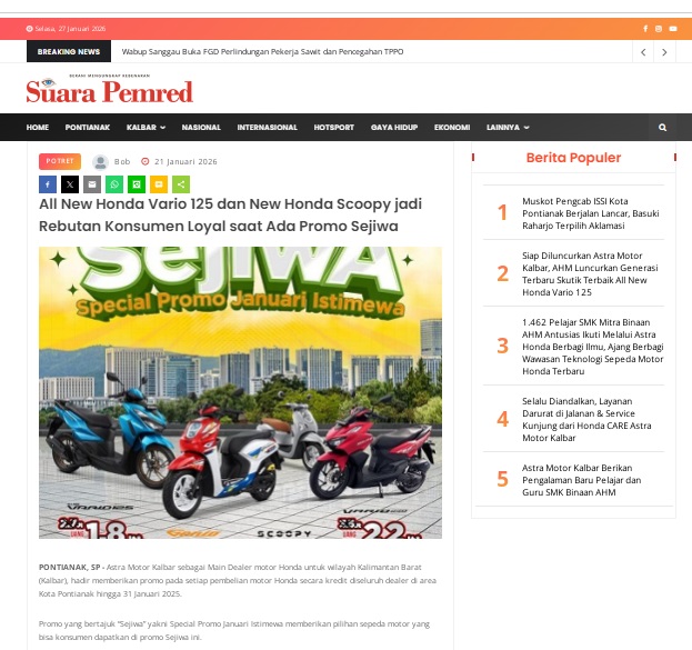 All New Honda Vario 125 dan New Honda Scoopy jadi Rebutan Konsumen Loyal saat Ada Promo Sejiwa by masmul 21 Januari 2026 in Silahkan kunjungi https://www.suarapemredkalbar.com/read/potret/21012026/all-new-honda-vario-125-dan-new-honda-scoopy-jadi-rebutan-konsumen-loyal-saat-ada-promo-sejiwa. You Might Like Regional Public Launching New ADV160 The SUV Pride Grand Launching New PCX 160 Truly Exceptional! Tetap hati-hati ya bro sist berkendara saat hujan.