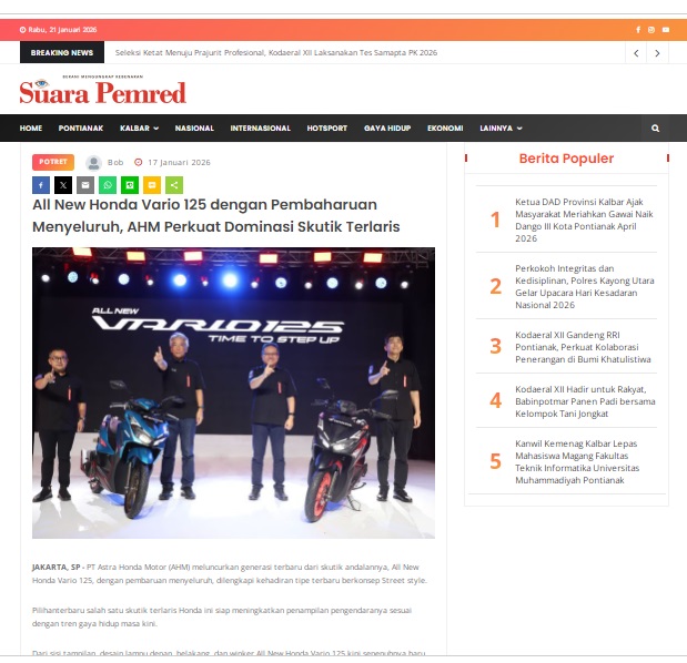 All New Honda Vario 125 dengan Pembaharuan Menyeluruh, AHM Perkuat Dominasi Skutik Terlaris by masmul 17 Januari 2026 in Silahkan kunjungi https://www.suarapemredkalbar.com/read/potret/17012026/all-new-honda-vario-125-dengan-pembaharuan-menyeluruh-ahm-perkuat-dominasi-skutik-terlaris. You Might Like Regional Public Launching New ADV160 The SUV Pride Grand Launching New PCX 160 Truly Exceptional! Tetap hati-hati ya bro sist berkendara saat hujan.