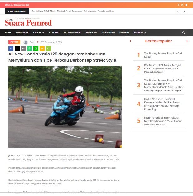 All New Honda Vario 125 dengan Pembaharuan Menyeluruh dan Tipe Terbaru Berkonsep Street Style by masmul 7 Desember 2025 in Silahkan kunjungi https://www.suarapemredkalbar.com/read/potret/07122025/all-new-honda-vario-125-dengan-pembaharuan-menyeluruh-dan-tipe-terbaru-berkonsep-street-style. You Might Like Regional Public Launching New ADV160 The SUV Pride Grand Launching New PCX 160 Truly Exceptional! Tetap hati-hati ya bro sist berkendara saat hujan.