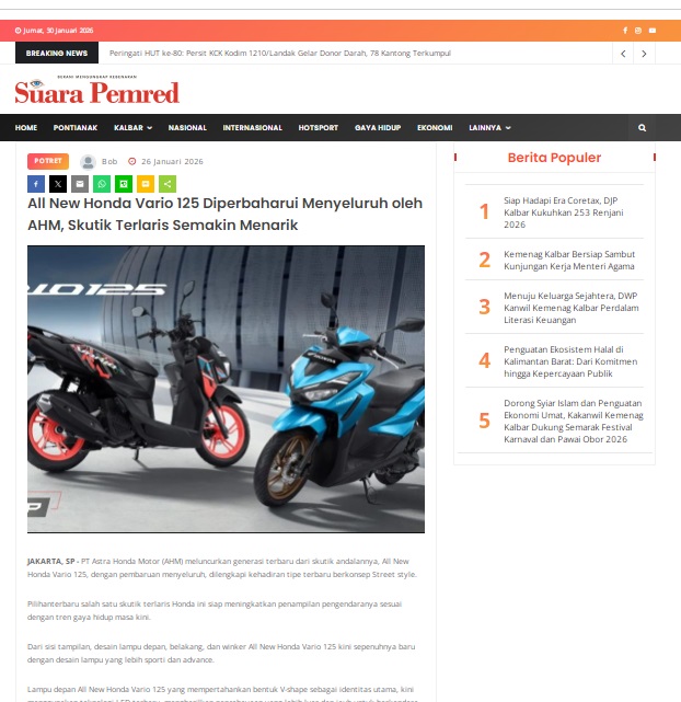 All New Honda Vario 125 Diperbaharui Menyeluruh oleh AHM, Skutik Terlaris Semakin Menarik by masmul 26 Januari 2026 in Silahkan kunjungi https://www.suarapemredkalbar.com/read/potret/26012026/all-new-honda-vario-125-diperbaharui-menyeluruh-oleh-ahm-skutik-terlaris-semakin-menarik. You Might Like Regional Public Launching New ADV160 The SUV Pride Grand Launching New PCX 160 Truly Exceptional! Tetap hati-hati ya bro sist berkendara saat hujan.