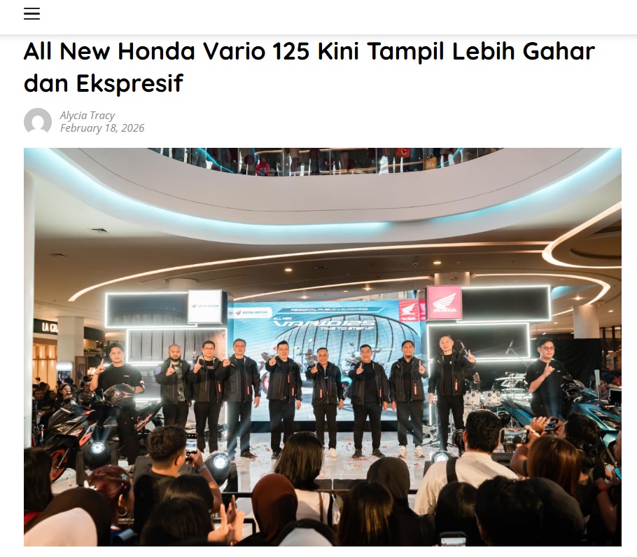 All New Honda Vario 125 Kini Tampil Lebih Gahar dan Ekspresif by Tracy 18 Februari 2026 in Silahkan kunjungi https://hipontianak.com/all-new-honda-vario-125-kini-tampil-lebih-gahar-dan-ekspresif/. You Might Like Regional Public Launching New ADV160 The SUV Pride Grand Launching New PCX 160 Truly Exceptional! Tetap hati-hati ya bro sist berkendara saat hujan.