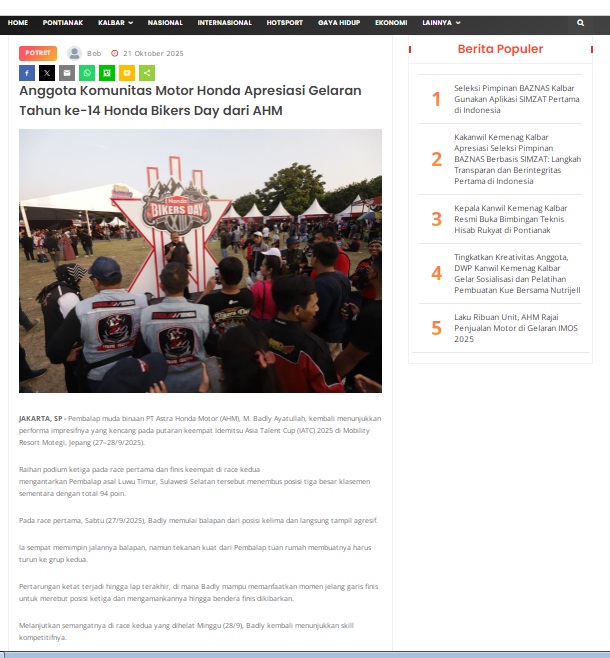 Anggota Komunitas Motor Honda Apresiasi Gelaran Tahun ke-14 Honda Bikers Day dari AHM by masmul 21 Oktober 2025 in Silahkan kunjungi https://www.suarapemredkalbar.com/read/potret/21102025/anggota-komunitas-motor-honda-apresiasi-gelaran-tahun-ke-14-honda-bikers-day-dari-ahm. You Might Like Regional Public Launching New ADV160 The SUV Pride Grand Launching New PCX 160 Truly Exceptional! Tetap hati-hati ya bro sist berkendara saat hujan.