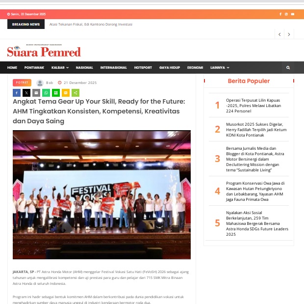Angkat Tema Gear Up Your Skill, Ready for the Future: AHM Tingkatkan Konsisten, Kompetensi, Kreativitas dan Daya Saing by masmul 21 Desember 2025 in Silahkan kunjungi https://www.suarapemredkalbar.com/read/potret/21122025/angkat-tema-gear-up-your-skill-ready-for-the-future-ahm-tingkatkan-konsisten-kompetensi-kreativitas-dan-daya-saing. You Might Like Regional Public Launching New ADV160 The SUV Pride Grand Launching New PCX 160 Truly Exceptional! Tetap hati-hati ya bro sist berkendara saat hujan.