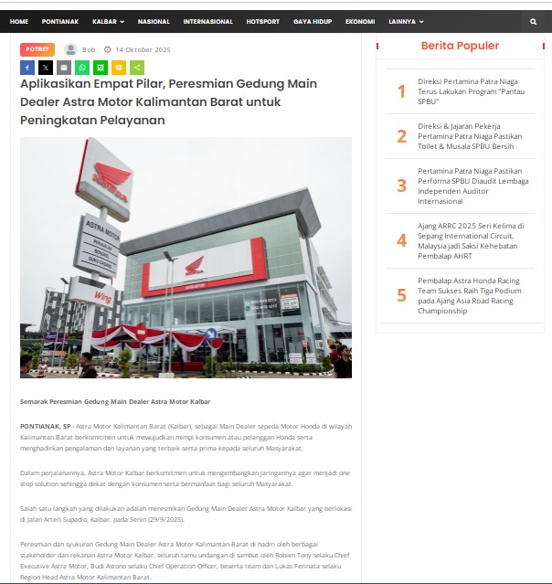 Aplikasikan Empat Pilar, Peresmian Gedung Main Dealer Astra Motor Kalimantan Barat untuk Peningkatan Pelayanan by masmul 14 Oktober 2025 in Silahkan kunjungi https://www.suarapemredkalbar.com/read/potret/14102025/aplikasikan-empat-pilar-peresmian-gedung-main-dealer-astra-motor-kalimantan-barat-untuk-peningkatan-pelayanan. You Might Like Regional Public Launching New ADV160 The SUV Pride Grand Launching New PCX 160 Truly Exceptional! Tetap hati-hati ya bro sist berkendara saat hujan.