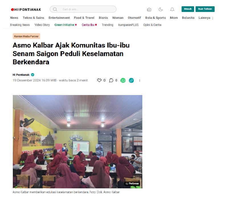 Asmo Kalbar Ajak Komunitas Ibu-ibu Senam Saigon Peduli Keselamatan Berkendara by Leo Prima 19 Desember 2024 in Silahkan kunjungi https://kumparan.com/hipontianak/248TPwtDKY6?utm_source=App&utm_medium=wa&shareID=b685mFItLgHp. Tags: Asmo Kalbar Astra Motor kalbar Honda Kalbar Keselamatan Berkendara Motor Honda PT AHM safety riding You Might Like Regional Public Launching New ADV160 The SUV Pride Grand Launching New PCX 160 Truly Exceptional! Tetap hati-hati ya bro sist berkendara saat hujan.